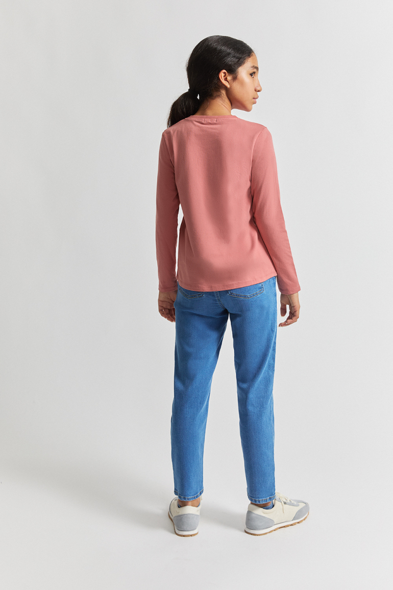 Una camiseta que convierte lo cotidiano en algo especial. Disponible en colores maquillaje y blanco roto, esta prenda está pensada para niñas de 4 a 12 años que quieren brillar con estilo y comodidad.