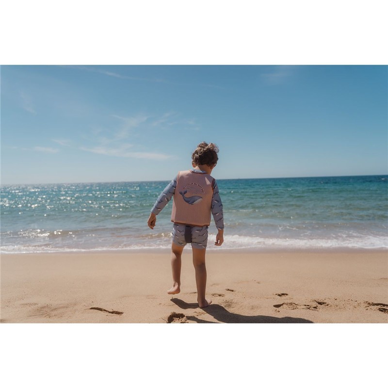 Este chaleco de natación Océano es imprescindible para los niños amantes de la natación. Con un diseño sin mangas y cuello en V, ofrece máxima comodidad y libertad de movimiento a los pequeños nadadores. Su estampado de rayas y ballenas es un éxito en la playa o la piscina. El material proporciona mayor flotabilidad y seguridad en el agua. Con cierres de velcro y cremallera, el chaleco es fácil de poner y quitar, lo que permite a los niños estar listos para nadar rápidamente. Este producto es una ayuda y debe usarse siempre bajo la supervisión de un adulto. Incluye una tarjeta con Eurolog. Edad recomendada: 2-3 años.